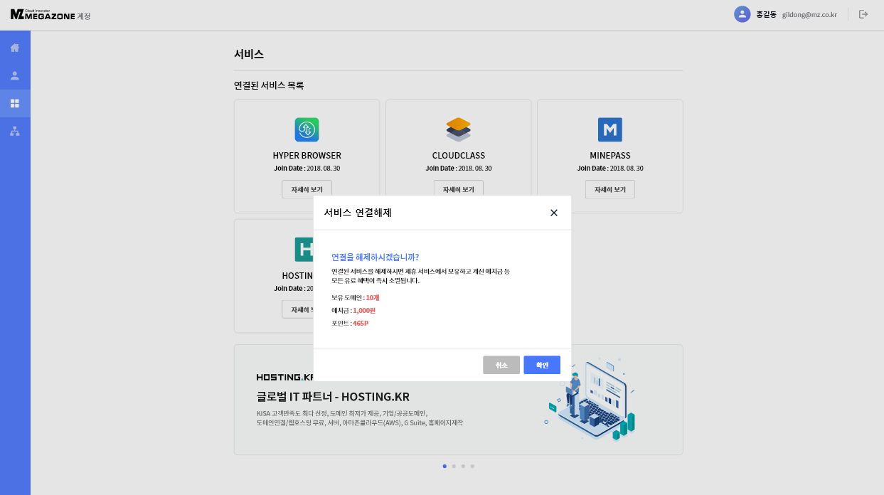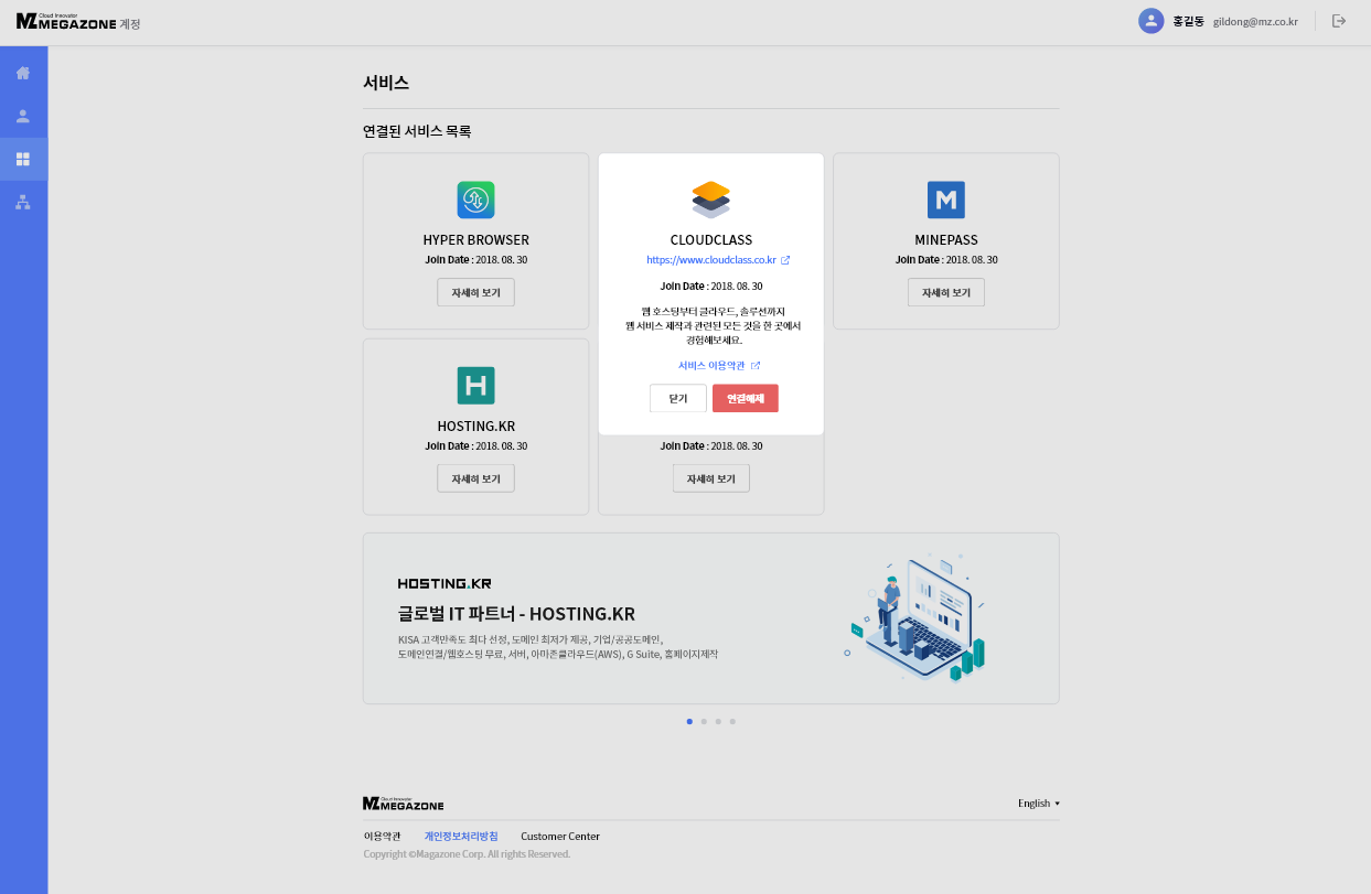 메가존 계정으로 가입하신 서비스 중, 원하시는 특정 서비스만 선택적으로 탈퇴하실 수 있습니다.